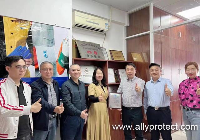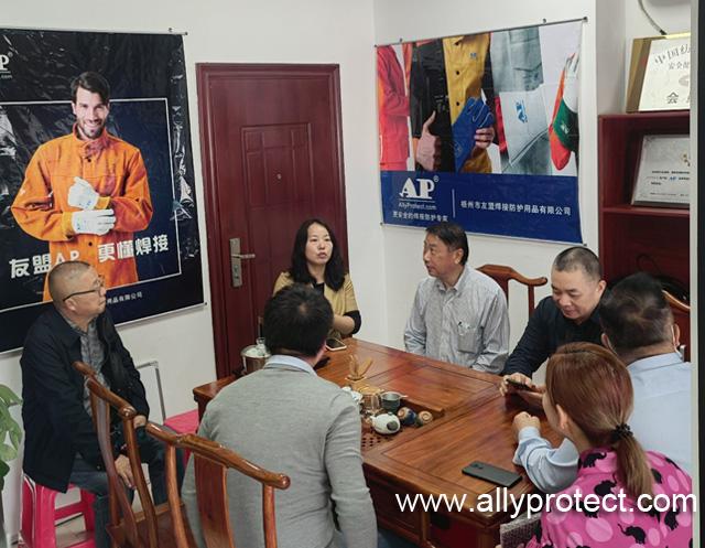 2022年34日,廣東省安全生產(chǎn)協(xié)會勞動防護(hù)分會會長李聲譽(yù)、秘書長祝平、副秘書長杜玉霜一行到達(dá)副會長單位——梧州市友盟焊接防護(hù)用品有限公司,受到了友盟總監(jiān)鄒暖春及公司各區(qū)域負(fù)責(zé)人的熱情接待。